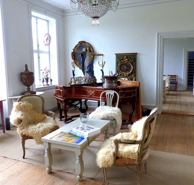 Dass man hier schwärmen kann, liegt allein am kreativen Heine und seinem guten Geschmack. Seit über vierzig Jahren betreibt er seinen Antiquitätenhandel in Kopenhagen. Da lag es auf der Hand, dass er ein angemessenes Zuhause für sich und seine kostbaren Herrlichkeiten suchte und es in Gelskov Gods fand. Nach aufwendiger Restaurierung bietet er im Hauptgebäude seit 2008 dreizehn Luxuszimmer und eine Suite seinen Gästen aus aller Welt an. Einige Zimmer nutzt Heine privat, öffnet diese aber auf Wunsch jedem Interessierten mit Stolz und Vergnügen. Sie sind gleichermaßen sein Zuhause und Arbeitsplatz – hochherrschaftlich gestylt wie das gesamte Ensemble.