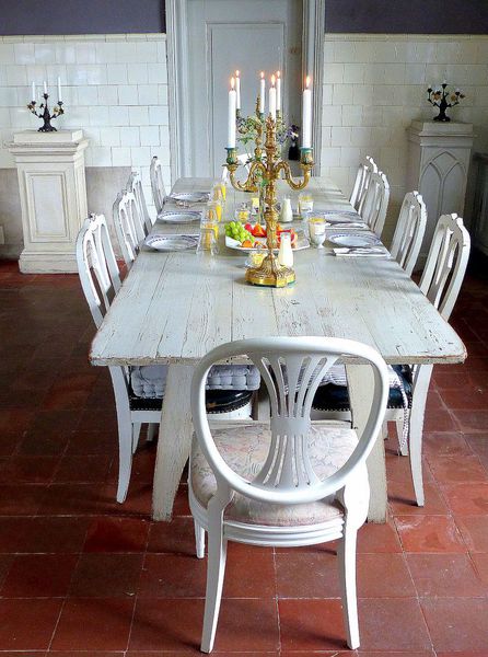 Und wo bitte wird gefrühstückt? Ein entsprechend ausgestatteter Raum ist nicht auf den ersten, auch nicht auf den zweiten Blick zu entdecken. Der Gastgeber lächelt, öffnet eine Tür zu seinen privaten Gemächern – und da steht er, der große antike, weiß gebeizte Holztisch, dekoriert mit riesigen Kerzenhaltern, Silber und schönem Geschirr. „Voilà, hier wird das Frühstück nicht eingenommen, hier wird es zelebriert…während die Blicke zum antiken Feuerherd wandern, auf die blankpolierten Kupfertöpfe, Pfannen, Kasserollen und, und, und ...