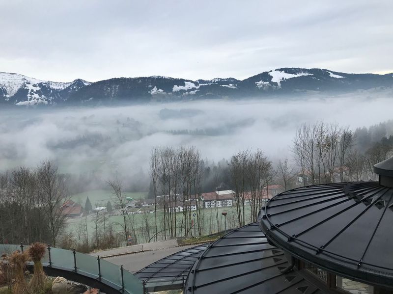 Ankommen im Hotel Allgäu Sonne in Oberstaufen, da kann man bei einer Jause, einen Blick auf die Berge zu werfen. Der Hochgrat ist mit 1.833 Metern der höchste Berg im Oberallgäu. Der 1.325 Meter hohe