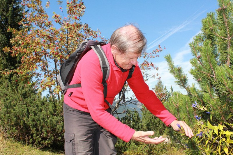 Hindelang, bei der mir Adelheid erklärt, dass ich mich fast in den Silbermantel gesetzt hätte, den kleinen Bruder des Frauenmantel, wandern wir über eine Hochalmwiese bis zur Gaststätte Hirschalpe.