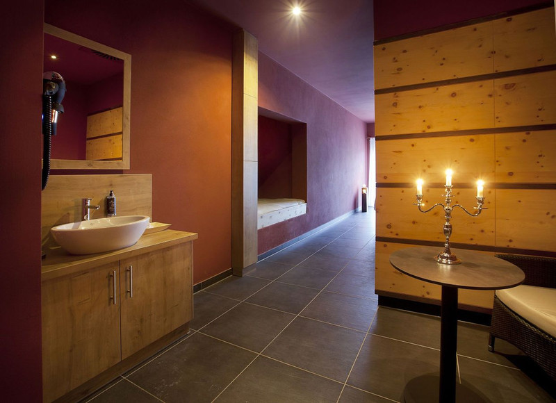 auch die Ruheräume werden um zwei weitere, einer sogar mit Kamin, aufgestockt. Im 3. Stock erwartet dann die neue „Roof-Top Bar“ die Gäste auf einen Smoothie oder Drink. Wie ein roter Faden zieht