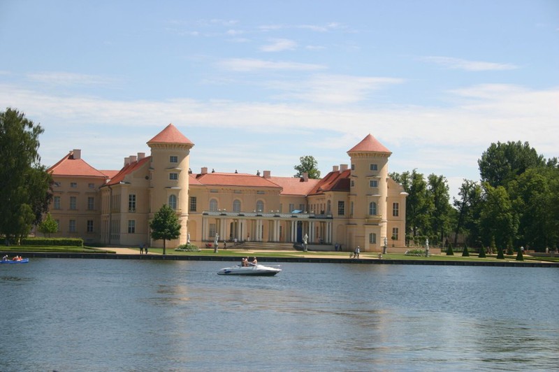 Noch heute flankieren Bäume und Schilf den See. Schon Tucholsky und Fontane schwärmten von dem Anblick des Schlosses Rheinsberg vom Wasser aus.