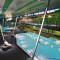 unter freiem Himmel. Das energiereiche Thermalwasser sprudelt aus einer 1700 Meter tiefen Quelle in die Becken. Auf insgesamt 400 Quadratmetern Wasserfläche können die Gäste des Gesundbrunnens ihre