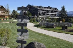 Landschaft. Vom Haupthaus sind sie nicht zu sehen. Im Gegensatz zu den drei Chalets, die scheinbar wie kleine Berghütten in der Wiese stehen. Jedes von ihnen ist ausgerichtet auf