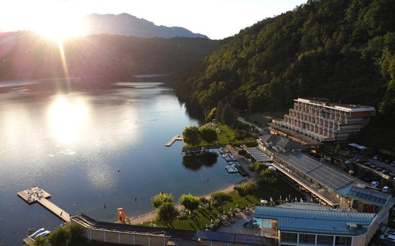 Das beliebte dreieinhalb-Sterne Familienhotel „Parc Hotel du Lac“ in Levico Terme, das im reizvollen Valsugana Gebiet im Trentino in Norditalien liegt, befindet sich in einer sehr guten Lage am Ufer des Levicosees. Vom Hotel aus genießt man auch den Blick auf Wiesen, Wälder und auf die Berge. Wie Denkmäler wirken in nicht allzu weiter Ferne die bizarren Felsspitzen der schneebedeckten Dolomiten.