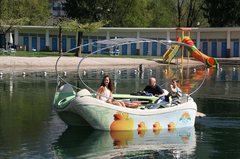 Auch ein Pool, steht zur Verfügung. Sehr frequentiert wird stets der Tretboot sowie E- Bootverleih.