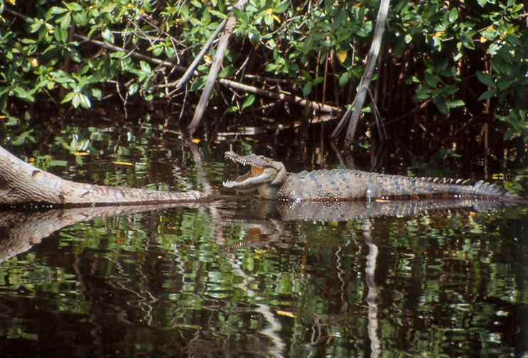 nicht die Krokodile füttern, sie sind geschützt", ermahnt der Bootsmann streng. Große Teile Jamaikas stehen unter Naturschutz, wie die Mangroven und das Feuchtland am Fluss. Weiße Ibisse stelzen in