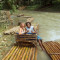 Bergen, darum ist das Wasser gelb-lehmig, sonst ist es klar", erklärt Flößer Ivo. Geschickt steuert er das lange, schmale Bambusfloß über leichte Stromschnellen und stoppt: „Ya, maan, Limestone ist