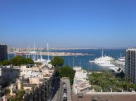 Dachterrasse mit kleinem Pool, von wo aus man einen tollen Blick auf den Hafen „Port de Palma“ hat, der weniger als ein Kilometer weit weg ist. So lässt sich schon mal aus der Ferne