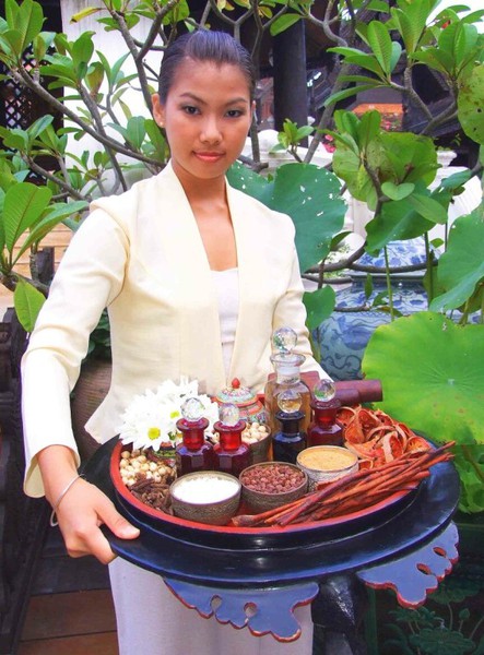 Das helle Klingeln eines Glöckchens. Ein Hahnenschrei, irgendwo in der Ferne. Das ebenfalls im Lannastil gestylte Dheva Spa ist ausgerichtet auf Einkehr und Entspannung. Therapeutin Naphali bringt Tee, bereitet ein blumiges Fußbad vor bei Sphärenklängen, zündet Räucherstäbchen an. Die Sohlen von Sandalen, die rhythmisch auf der Erde schleifen, ein Takt, der endgültig in eine Art Trance wiegt. Und dann: Stille. Schwer fließt warmes Kräuteröl über den ganzen Körper, dann spürt man nur noch zehn Finger, die zu walken beginnen. Auf Knöcheln reiben, sie knackend strecken und recken, kreisen, tüpfeln, tänzeln und trommeln und in Linien auf- und abfahren und die Fasern der Muskeln zum Schwingen bringen. Naphali verstreicht dann eine Paste aus Tamarinde auf den Muskeln und stimuliert so die Energiepunkte des Körpers, um blockierte Energien freizusetzen. Thailands buddhistische Mediziner, die Massagen als Teil ihrer Behandlung einsetzen, schwören auf Tok Sen oder Lanna Massage – auf den Gleichklang von Körper, Geist und Seele, der Gesundheit bedeutet.