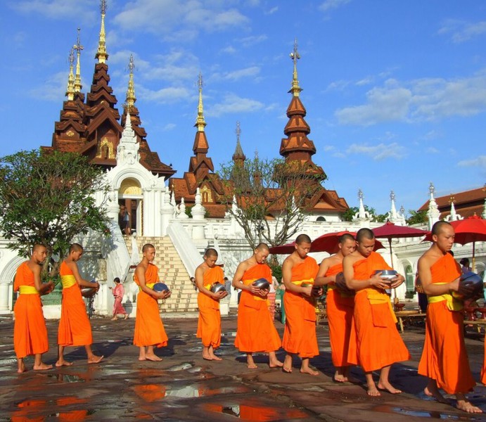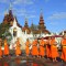 Der Blick nach unten auf goldene Pagoden und tropischen Regenwald setzt Glückshormone frei. Tempelspitzen und der Goldene Chedi des Klosters Wat Phrathat Doi Suthep schälen sich aus dem Morgennebel. Dutzende Glocken läuten im heiligsten Ort Thailands, um dem Himmel von guten Taten zu künden.