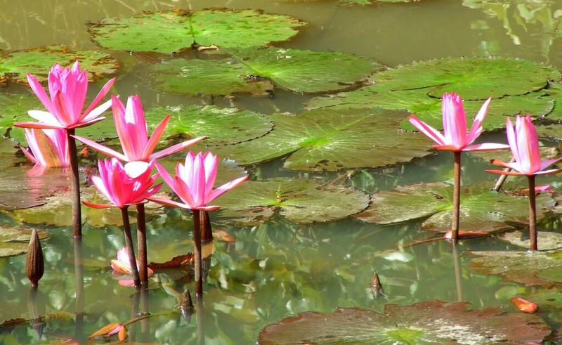 Aber die Nacht verschluckt die Traumkulisse. Die Sonne versinkt, schon steht der Mond über den Spitzen der Pavillons. Was bleibt, sind leuchtende Bilder, warmer Wind und der schwere Duft aus Tonschalen, in denen Lotus- und Jasminblüten schwimmen.