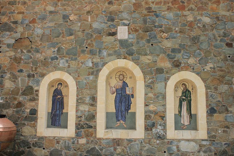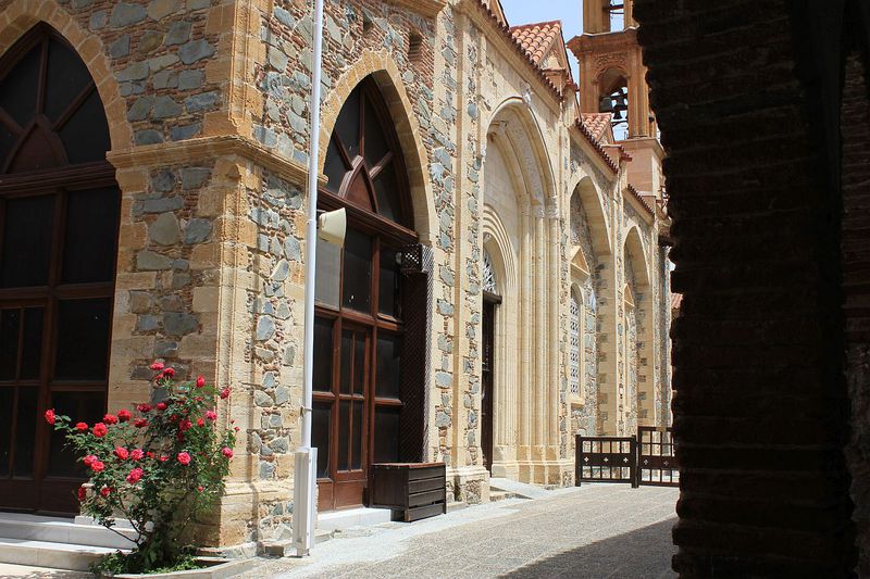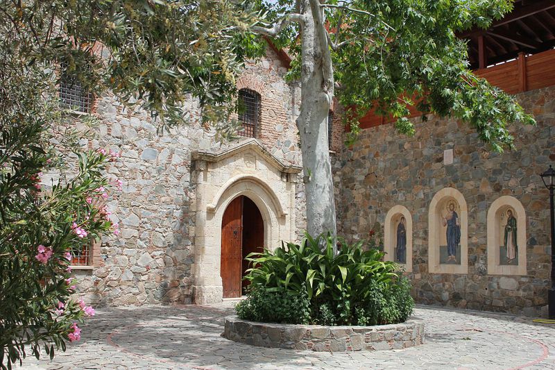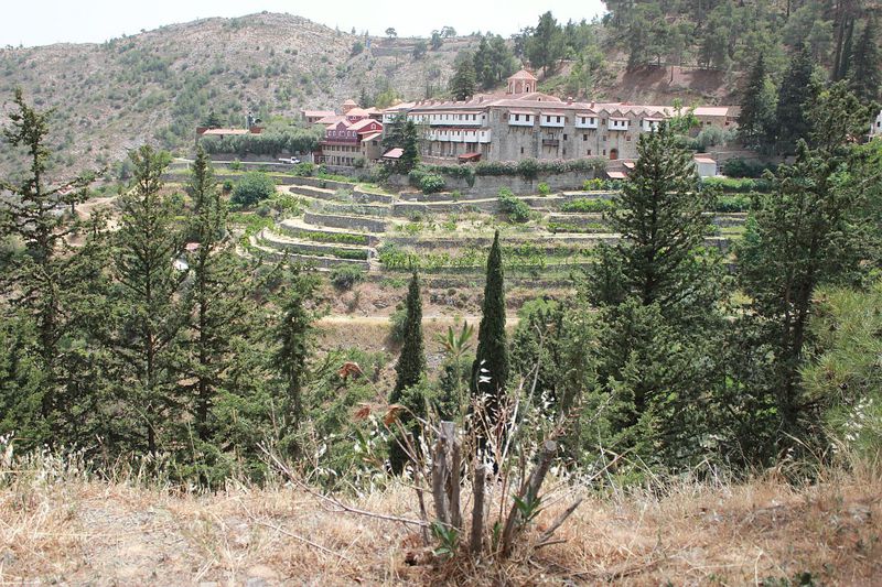 Das Kloster Machairás liegt auf etwa 800 m Höhe an den Ausläufern des Troodos – Gebirges. Schon wegen der Fahrt durch die schöne Landschaft ist der Besuch dieses Klosters lohnend. Der Legende nach fanden zwei Einsiedler im Wald in einer Höhle die Ikone der Jungfrau Maria. Daraufhin verfügte Kaiser Manuel Komnenos im 12. Jh. den Bau des Klosters und stattete es mit zahlreichen Ländereien aus. Kloster und Kirche wurden nach einem Brand im Jahr 1892 im klassizistischen Stil neu errichtet. Die segenspendende Ikone wurde von der Feuersbrunst verschont. Sie ist ein beliebtes Pilgerziel, da sie angeblich die Heilung von Wunden beschleunigt und für Regen sorgt. Heute sind es etwa 25 Mönche, die das Kloster bewohnen und bewirtschaften. Pastor Joseph führt Interessierte durch das Kloster und erzählt vom Alltag des Klosterlebens.